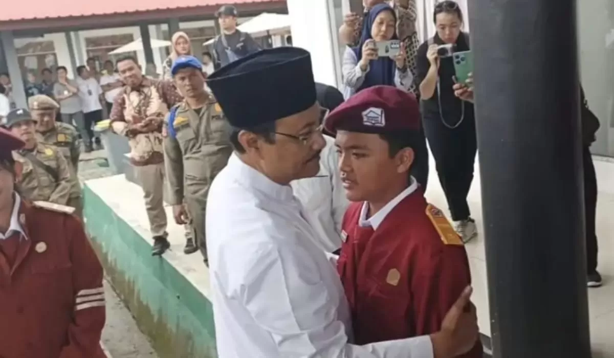 Gus Ipul disambut siswa-siswi SRMP 1 Deli Serdang dan langsung berdialog dengan para siswa. Ia juga memberi motivasi kepada Fahry Adris, komandan barisan, yang kemudian dipeluk Gus Ipul sebagai bentuk dukungan.
