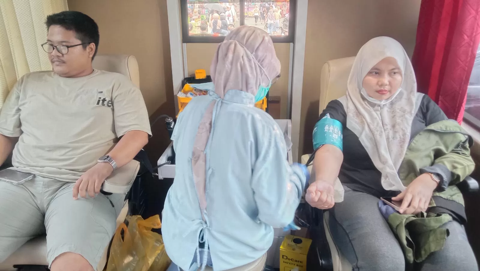 Salah satu pasangan yang mencuri perhatian adalah Saroji dan Siti Munfarida, warga Desa Ampel, Kecamatan Wuluhan. Keduanya tampak antusias mengikuti prosedur pemeriksaan sebelum jarum donor bersarang di lengan mereka.