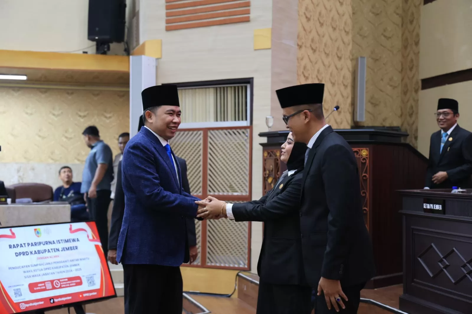 Prosesi sakral pengucapan sumpah janji Pengganti Antar Waktu (PAW) untuk sisa masa jabatan 2024 – 2029 ini berlangsung sebelum Penetapan dan Penyerahan Rekomendasi DPRD Kabupaten Jember terhadap LKPJ Bupati Jember Tahun 2025 oleh Pimpinan DPRD Kabupaten Jember kepada Bupati Jember dilaksanakan.