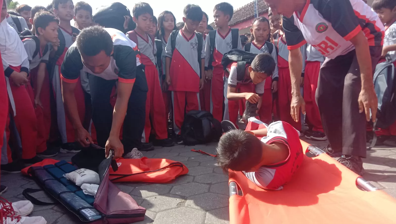 Sesampainya di titik kumpul, drama berlanjut. Tim PMR Mula SDN 01 Kepanjen tampak cekatan menyisir area kelas untuk mencari rekan mereka yang mengalami luka-luka. Dengan peralatan pertolongan pertama yang siap sedia, para anggota PMR ini memberikan pengobatan darurat dan menyiapkan tandu dengan gerakan yang terlatih. Kejadian tersebut merupakan bagian dari Simulasi Gempa Bumi dan Tsunami yang digelar secara mandiri oleh SDN 01 Kepanjen.